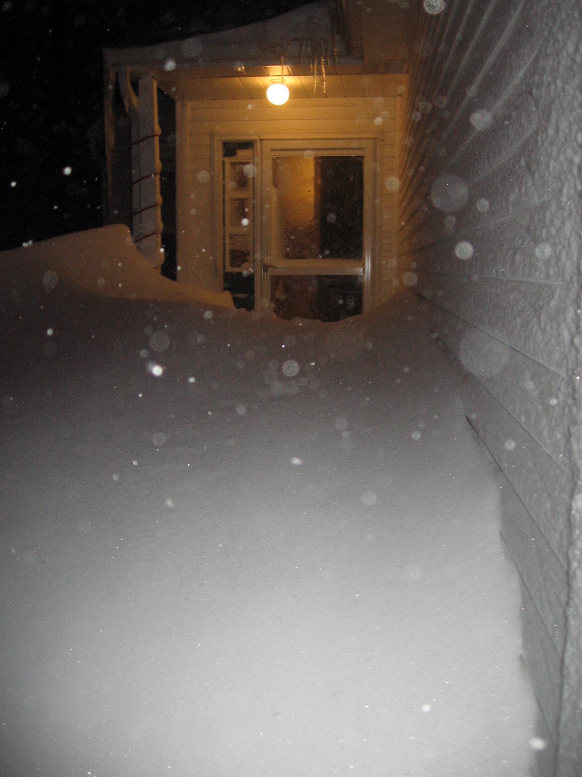 We woke up on Wednesday morning and we all were excited to get a peek at just what had happened over night...it was like Christmas. We were shocked to find that both of our doors, front and back, were snowed shut with drifts in front of them that we about five feet tall. Luckily we could get out of our garage door and make our way to dig out.
